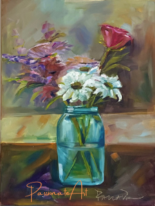 This Oil painting is made on a stretched canvas of 1 ½” thickness.